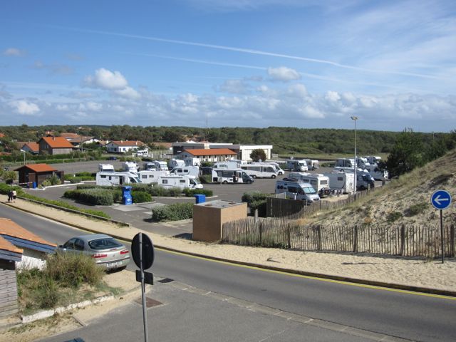 Ställplatsen för natten blir Mimizian; Plage Parking Hélistation/Mimizian Plage Sud. N44° 12’28” E1°17’45”. Här är plats för 80 bilar på asfalt och med el och wc betalade vi 13€. Ställplatsen ligger även den vid en sanddyn med havet på andra sidan. På kvällen tar vi cyklarna och cyklar in i byn. Vi hittar en mysig restaurang och äter varsin Moules Marinieres med frites och ett glas Rosé från Bordeuaxområdet. Jag tror det var de godaste musslor jag någonsin ätit!