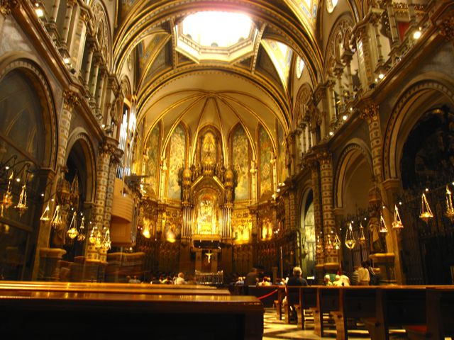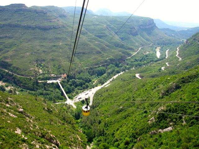 I morse lämnade vi Pyreneérna och letade oss till Monastir Montserrat, någon mil NV om Barcelona. Vi stannade vid en av parkeringarna och tog linbanan upp. Vilken utsikt! Klara dagar ska man kunna se ända till Mallorca, allra högst uppifrån. Väl uppe i staden besökte vi den stora katedralen. Jag tror bilderna får tala för sej själv.
