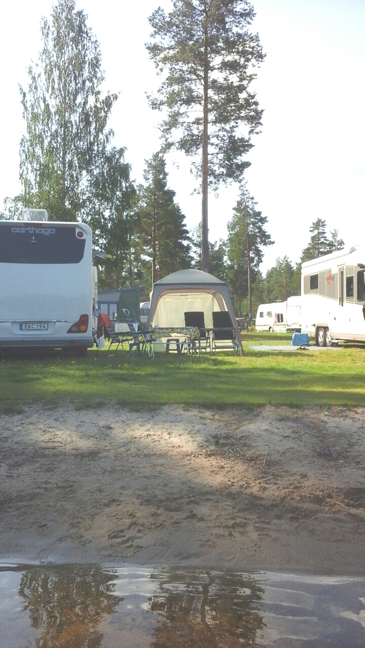 Här vid Medskogssjön, 2 mil norr om Sandviken har vi nog fått bästa platsen. Lite skugga och 17 steg till vattenbrynet. Kan inte säga att morgondoppet svalkat nämvärt det är 25-26 grader i sjön. Igår hann det bli tre bad och idag blir det flera. Himlen är fortfarande blå och värmen omsluter oss. Vilken sommar vi har! Idag fortsätter vi att slappa tillsammans med goda vänner från Sandviken och under dagen ansluter ytterligare ett par vänner hemifrån.