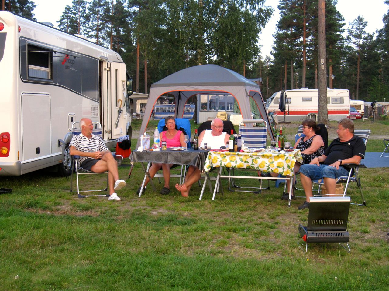 Helgen har tillbringats vid Medskogssjön. Den ligger 2 mil norr om Sandviken, på väg mot Ockelbo. Campingen ligger naturskönt med bad och bra faciliteter. Det finns en Naturstig med svamp och bärmarker precis inpå knuten. Här har vi åkt förbi flera gånger men aldrig stannat. Nu blev det av. Campingen ligger vid sjön och flera platser är precis jämte strandkanten. Andra har sjöutsikt. Vi hade turen att få en plats så nära sjön man kan komma. Servicehusen är helt OK och restaurangen var ganska välbesökt, både fredag och lördag, så den är säkert bra den med. Själv tyckte jag det var underbart att bara sitta och titta ut över sjön. Att det sedan var kanonväder och 25-26 grader i sjön, gjorde ju inget…