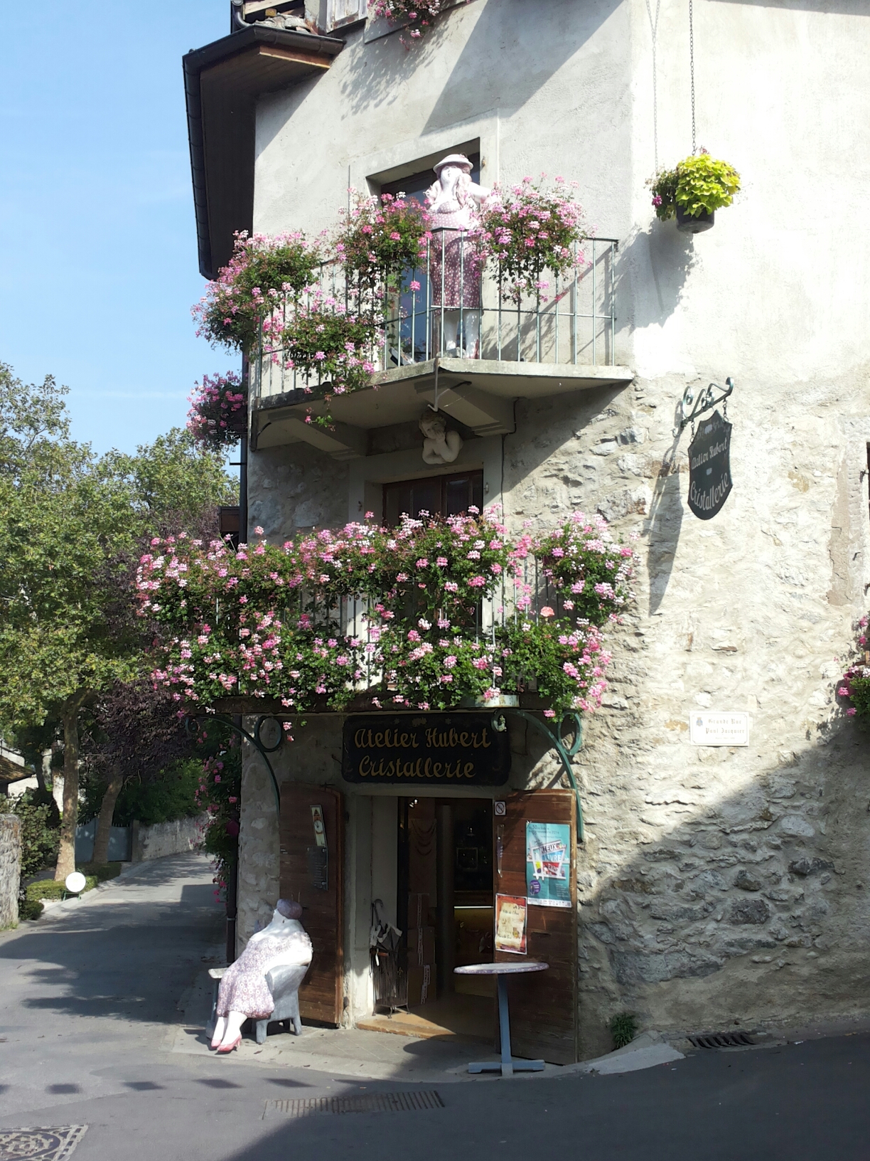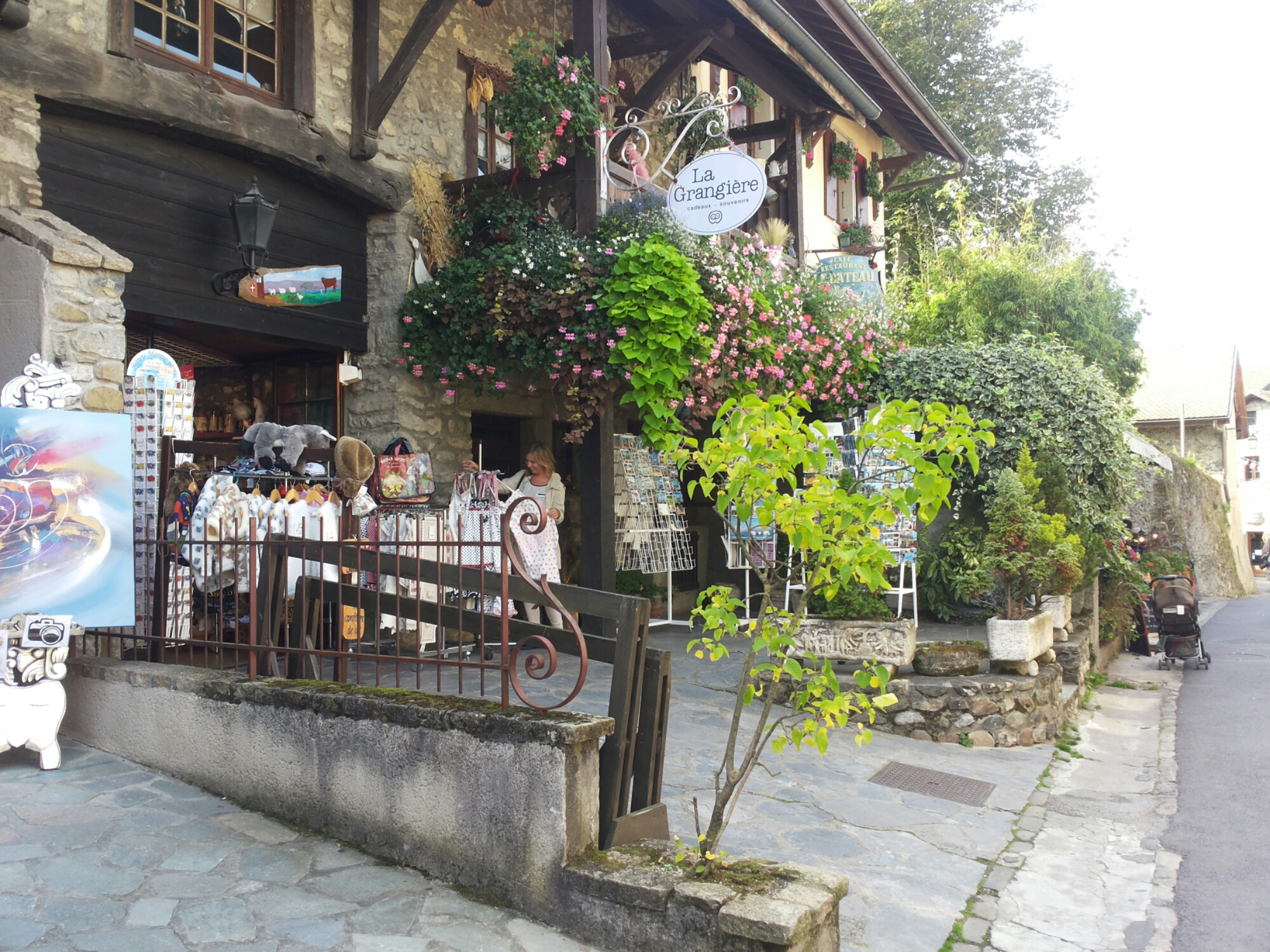 Idag tog vi bilen bort till Yvoire. En liten, jättemysig, medeltida stad. Den ligger precis bredvid Lac du Lehman (Genèvesjön) Gränderna var smala och blomlådorna dignade av blommor. Många restauranger fanns också och vi åt en fiskspecialitet från byn.