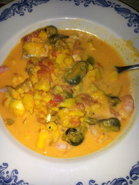 Efter att vi varit till till kyrkogården och tänt ljus på Görans föräldrars grav, letade vi på ett recept på en värmande Fisk- och skaldjursgryta. Den var väldigt god och värmde skönt i magen. Den var väldigt enkel att göra.
