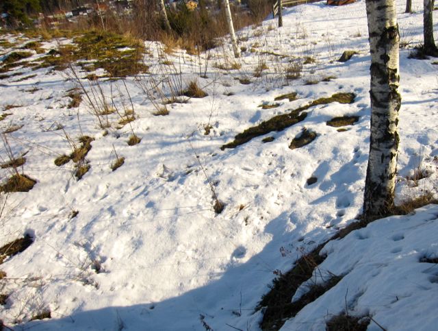 Förmiddagen ägnades åt lite inköp och en vända ner till Hätte för att ta hem min cykel. Lunchen blev en egengjord Ceasar-sallad i vårt soliga vardagsrum. Och jag märker att Göran tittar längtande ut i solskenet. Så därför tar vi en promenad i omgivningarna.