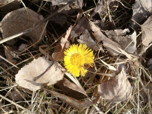 Tussilago kikar upp som små solar mellan gamla löv. Det är en härlig tid nu 🙂