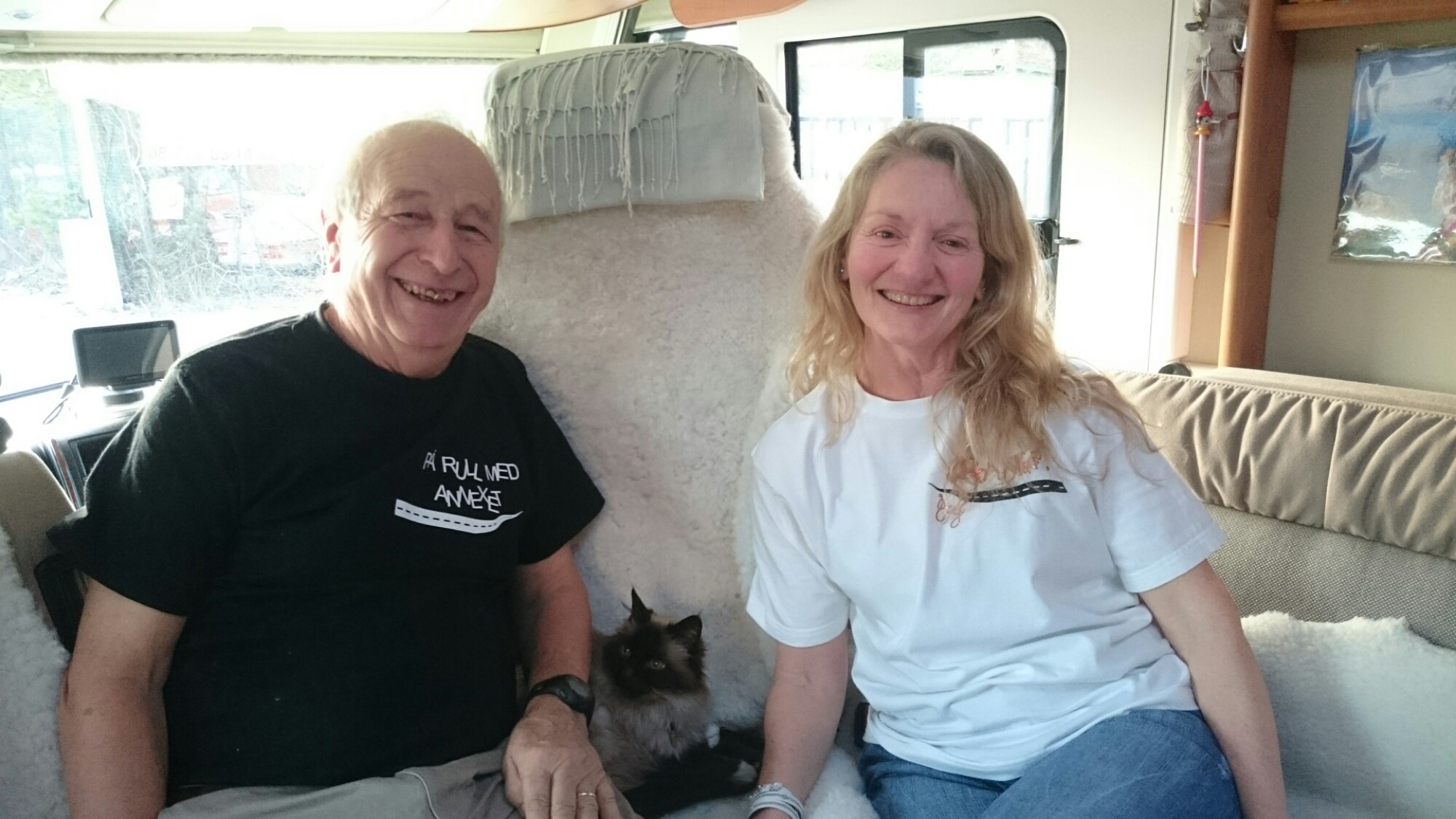Med husbil och Blogg som gemensamt intresse är det så lätt att träffas! Jag gissar att solpaneler har utvecklats under åren, precis som annan teknik, Vi satte på 2 st 135 w och en ”kraftigare” regulator så vi kommer att klara oss. De laddade i morse, trots kraftig dimma…