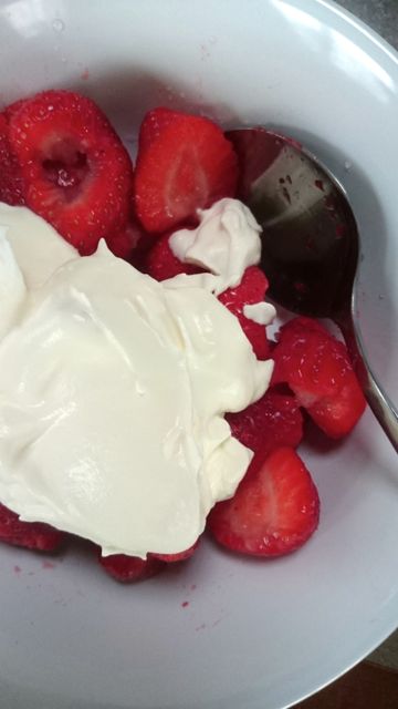 Jordgubbar o grädde är man svag för,mums mums 🙂
