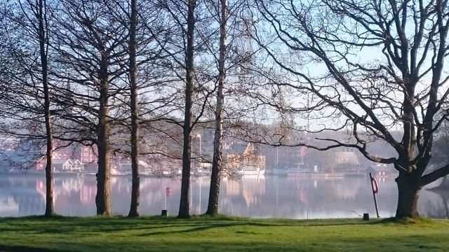 Morgonen bjuder på solsken och ett lätt dis ligger in över Motala. Det ger en lite trolsk stämning. Allt är stilla och tyst.