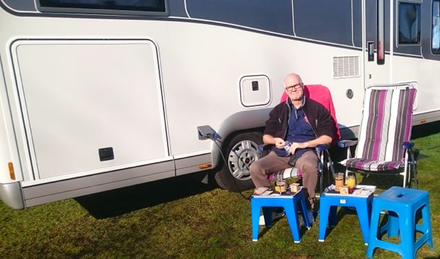Det är faktiskt så pass varmt att vi kan sitta ute och äta frukost. Det har inte börjat blåsa ännu.