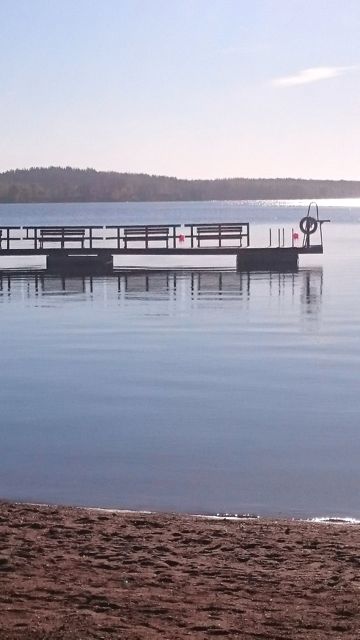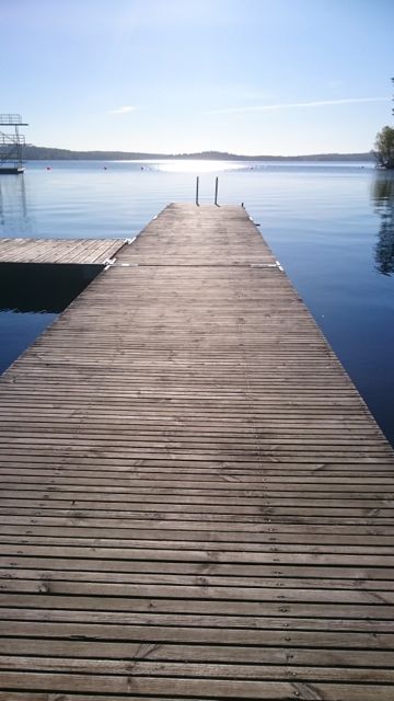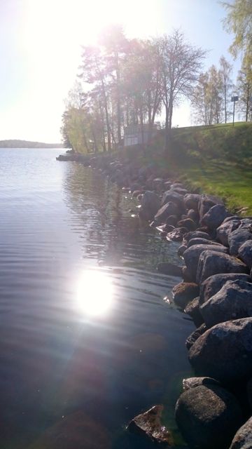 Sjön ligger spegelblank och solen glittrar så fint. Det är nästan så man blir lite sugen på ett morgondopp men när jag känner efter med handen är det ett väldigt enkelt beslut att vänta några veckor 😉