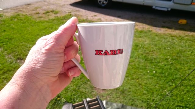 Hela helgen är vi på Hätte Camping och myser. Igår kom syrran och hennes man och hälsade på. Jätteroligt då det är första gången i Tranås för dem, sedan vi börjat på att etablera oss här nere. Till några av våra bloggvänners stora glädje, kan jag berätta att dom kör KABE husbil. Och dom bjöd på kaffe i muggar som hör till husbilen.