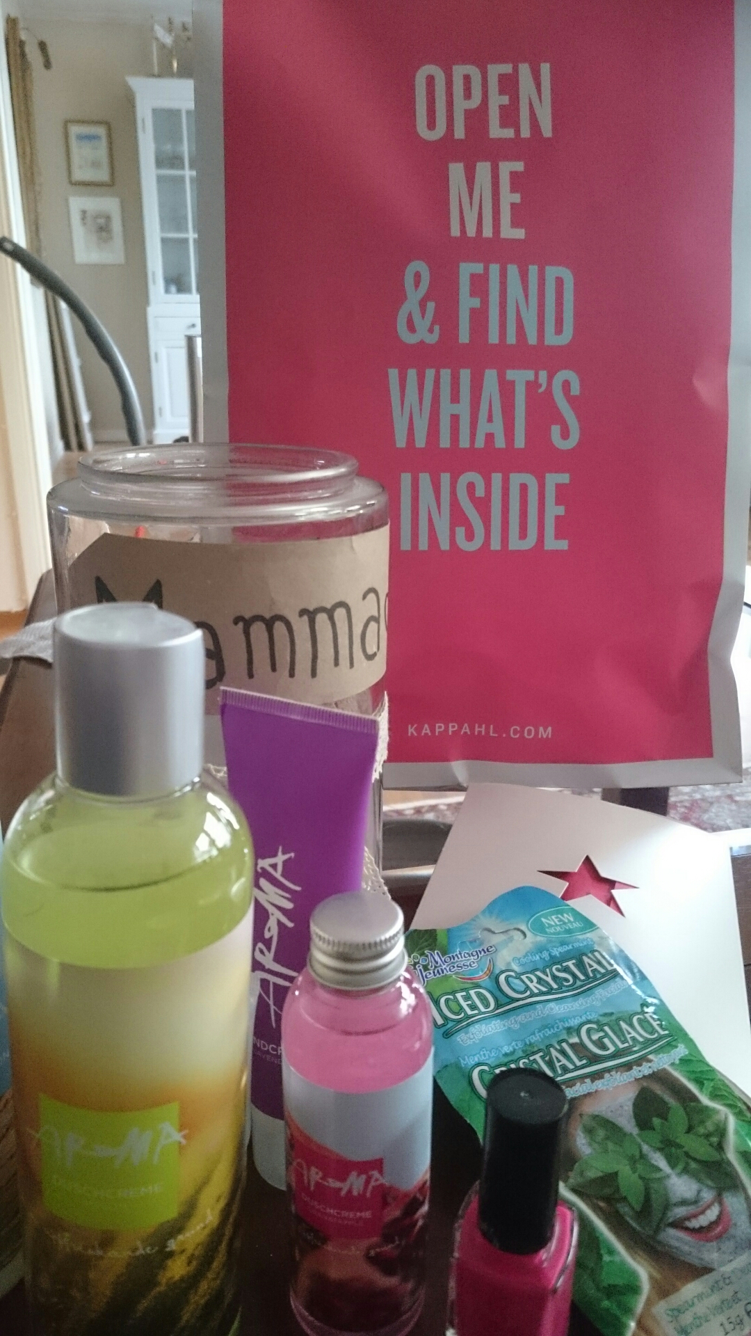 Mors Dag börjar (som vanligt) med regn. Oj vad trött jag är på detta väder! Känns väldigt skönt att det snart blir dags för sol och bad. Solsken blev det också i mitt hjärta när resten av familjen vaknat och kom med lite paket som bara innehöll nyttigheter (nästan)