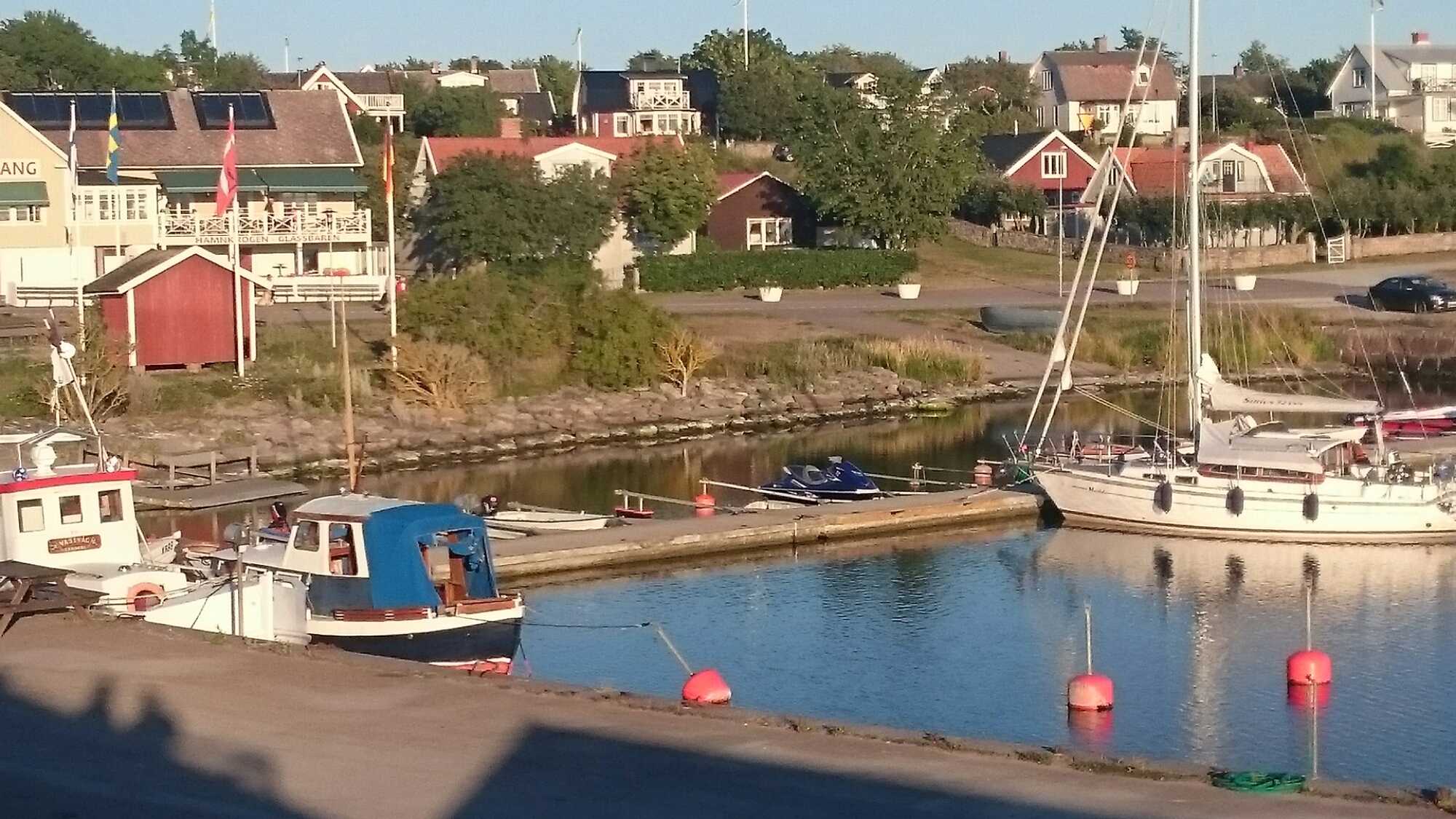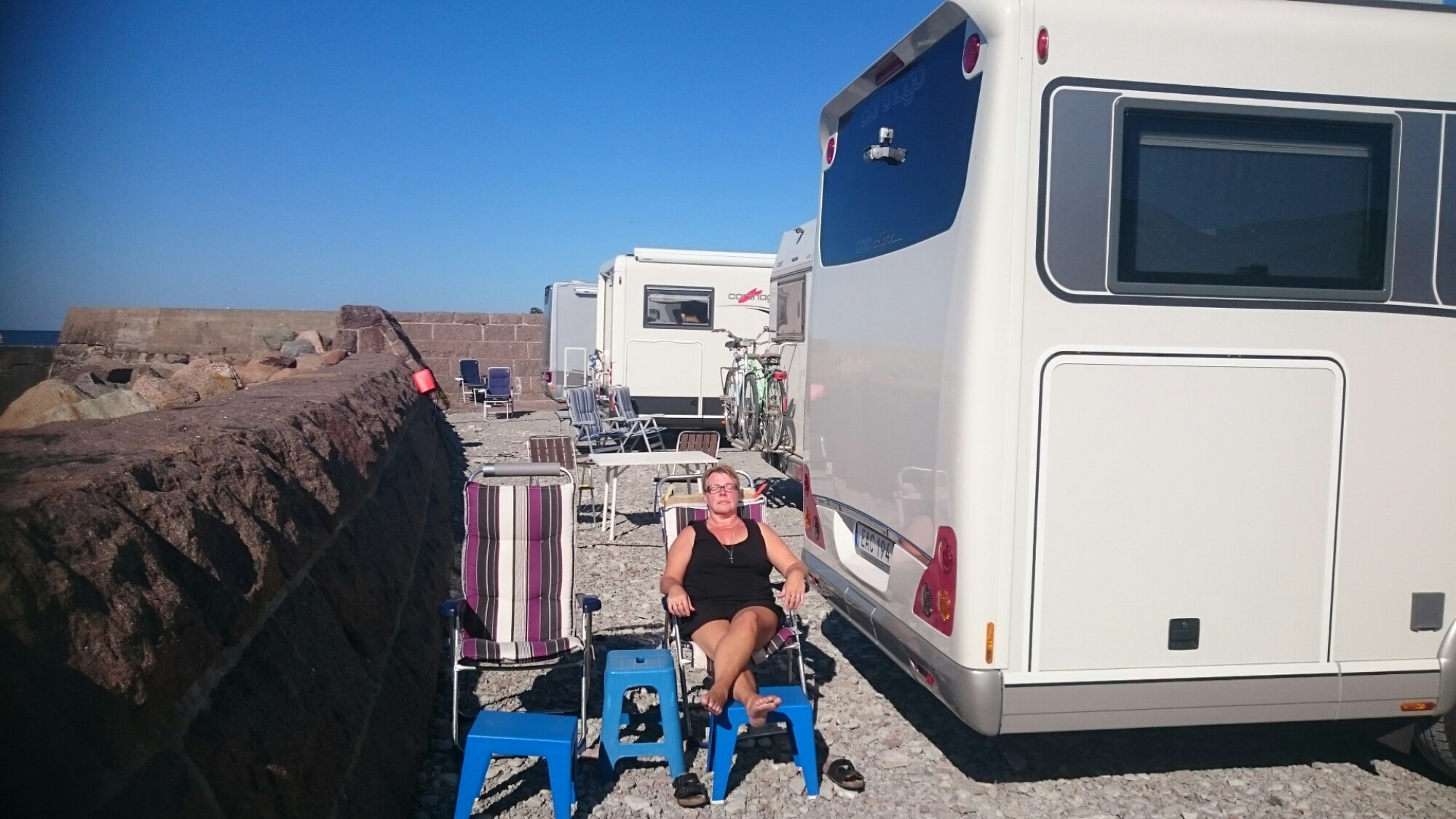 Efter Kårehamn förflyttade vi oss till Sandvik och ställplatsen i hamnen. Vi hade tur och fick en av de sista platserna och jag såg flera husbilar som fick vända.