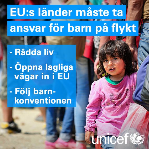 30 miljoner barn befinner sig nu just nu på flykt i Europa och övriga världen. Som alltid i katastrofer är det barnen som drabbas hårdast. UNICEF finns på plats med katastrofinsatser både i de konfliktdrabbade länderna, i flyktinglägren och på flyktvägen. Men, behoven är fortsatt stora. Rädda barns liv, ge en gåva på unicef.se eller sms:a LIV till 72900 för att skänka 100 kronor. Du kan också swisha en gåva till barn på flykt, nummer 123-024 00 36 (rekommenderad summa: 100 kr).