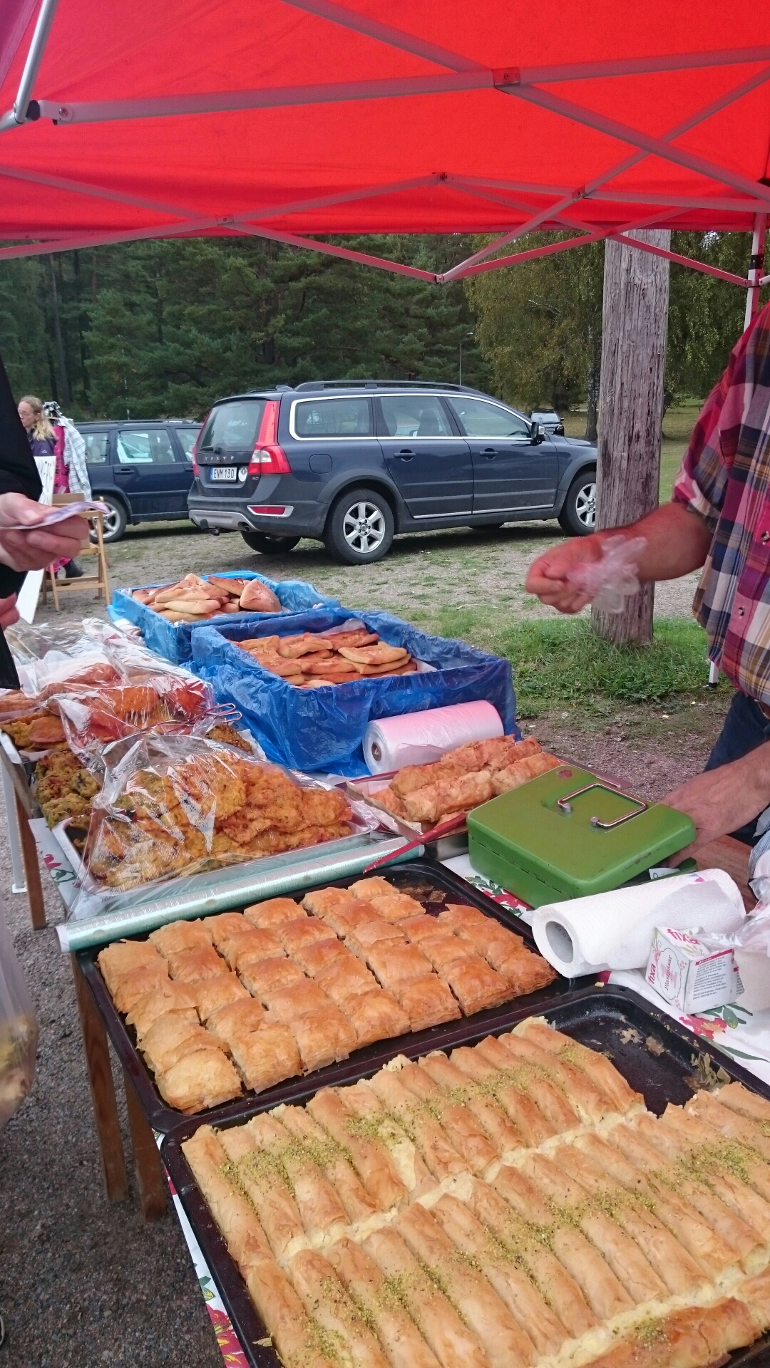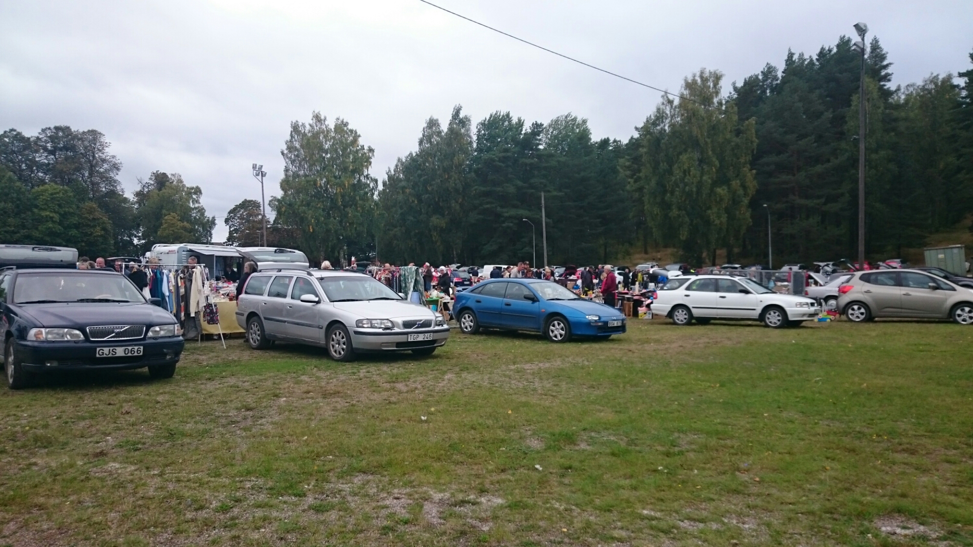 Vi tog oss en förmiddagsprommenad för att kika lite mera på Malmköping. Strax bortanför campingen var det bakuckeloppis. Många sålde sina gamla avlagda saker och nån sålde faktiskt nytt.