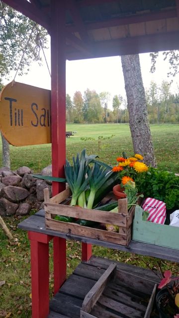 Här odlar vi enligt ekologiska principer grönsaker i vår trädgård som sedan skördas och tillagas i vårt kök.