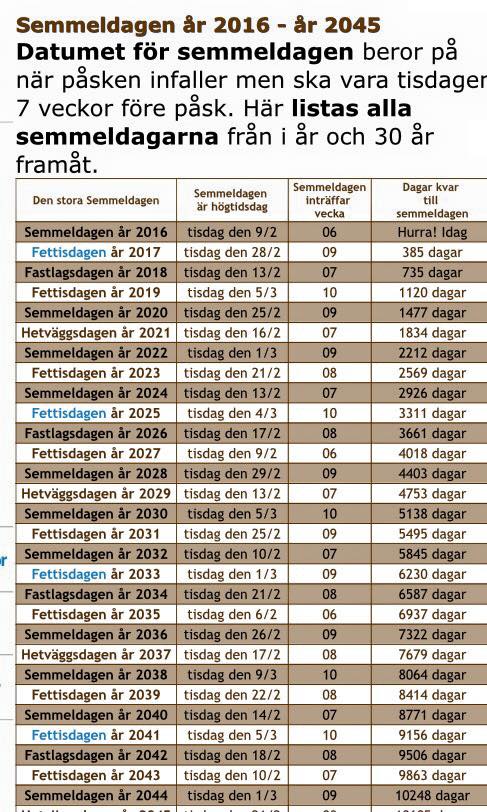 Idag är det Fettisdag och jag hoppas verkligen du fått mumsa på nån god semla. Kanske blev det en traditionell eller så blev det kanske den nya varianten, Semle-wrap. Min absoluta favorit är saffrans-semlan. Oavsett, så kanske du är en semleälskare av rang och då tycker jag verkligen du ska notera nedanstående datum 🙂