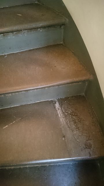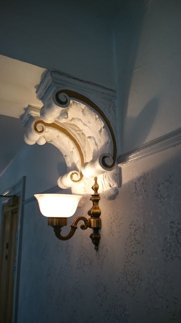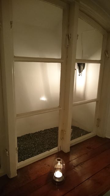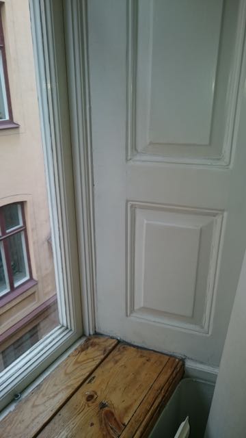 En fönstersmyg som bevarats, på väg ner till frukostmatsalen