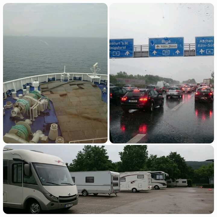 Sedan rullade vi söderöver. Körde på A7an och det rullade på bra. Kring Hamburg var det en del vägarbete men vi fick inga stopp. Stopp blev det däremot kring Köln och Bonn. Där tog det tid. Mycket trafik och väldigt mycket vägarbete. Trots det har vi kört olika Autobahn hela dagen. Några riktiga skyfall har vi också råkat ut för. värmen har dock varit med, som mest har vi haft +27