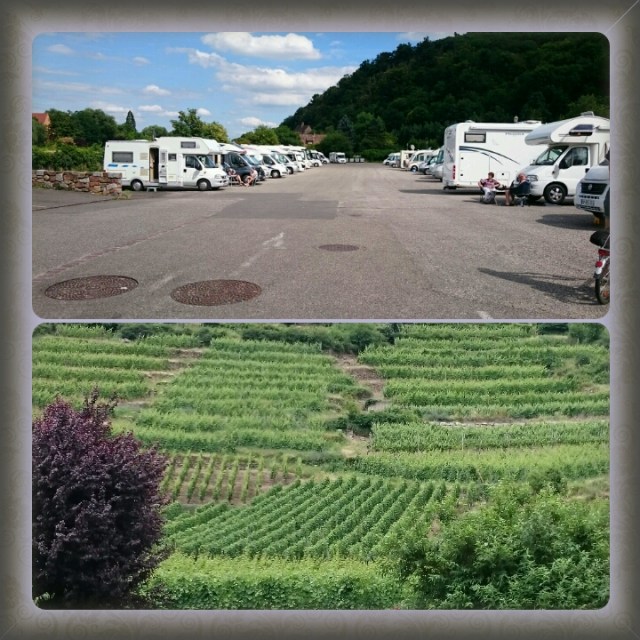 Strax väst om Colmar ligger staden Kaysersberg. Här finns också en mycket bra ställplats i direkt anslutning till stan. Detta är en ”typisk” tysk stad, trots att den ligger i Frankrike. Men så har ju Alsaceområdet tillhört båda länderna. Husen med sina korsvirken, kullerstensgator, små butiker och restauranger. Det var hur mysigt som helst att knalla omkring där och det var helt klart värt ett besök. Ställplatsen f.ö kostade 8€ hade toaletter, och möjlighet till tömning och fyllning. Den är på grus/asfalt och jag tror att det rymdes ca 80 fordon.