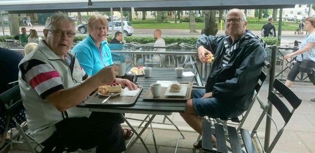 Vi fick visa lite av stan som de inte besökt tidigare vilket är lite extra roligt eftersom Matts och Birgitta har varit i stan sedan barnsben. Vi satte oss på Wienerbageriets uteservering och kikade på Tranås Musikkår som paraderade på Storgatan.