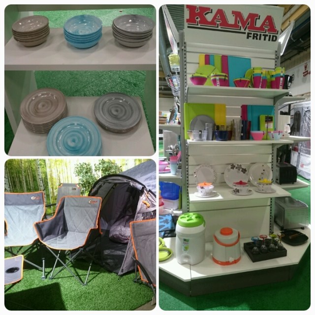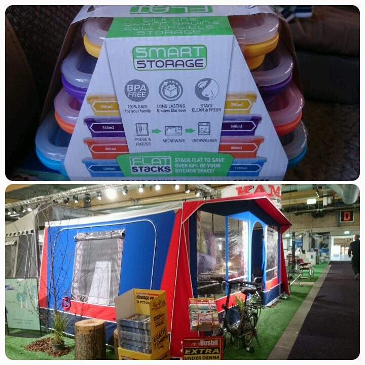 Hopfällbara silikonburkar som funkar i kyl och frys, micron och diskmaskinen. KAMA hade ett helt vanligt tält med, som kan locka till nya campare