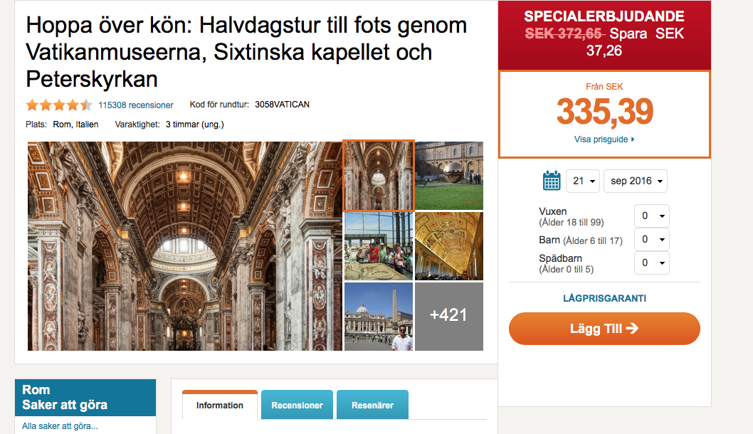 Idag har vi kollat lite inför vår Romresa, bla bokat ”gå-före-kön-biljetter” till Vatikanmuseerna, Sixtinska Kapellet och St Peterskyrkan. Det ska bli spännande att se all historia och vackra byggnader i verklighet. Ett par sköna skor och någon vattenflaska, så tar vi oss an detta kulturhistoriska område.