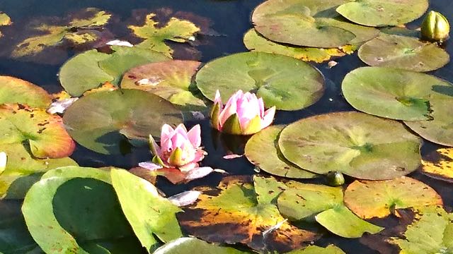 I dammen framför Nyköpingshus hade rosa näckrosor slagit ut. Även vita näckrosor var på gång med svällande knoppar
