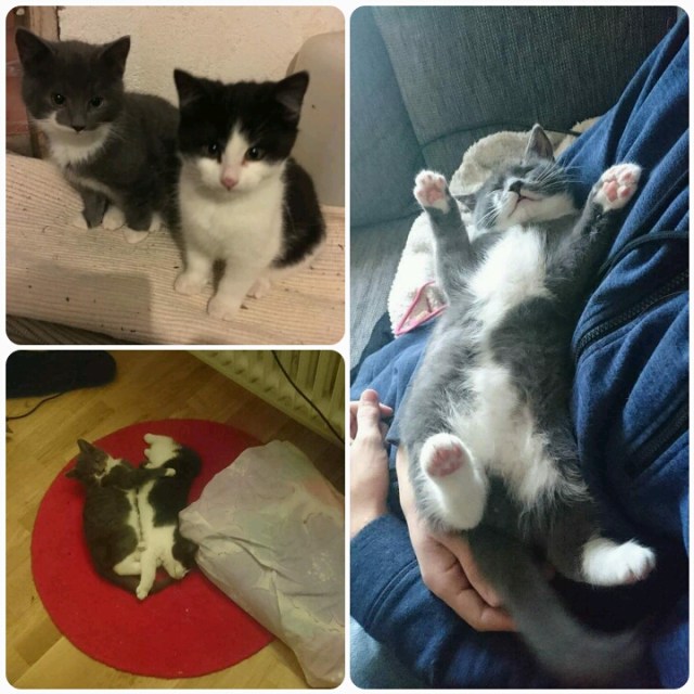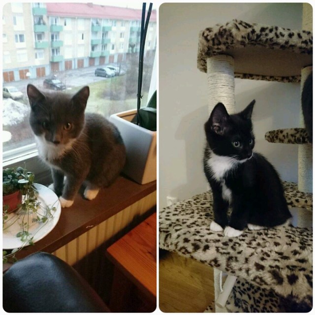 Två stycken sötisar på 15 veckor.Sven och Elsa överst till vänster, där Elsa är den som har mest vitt på sig. Tyvärr blev lyckan kortvarig då lilla Elsa avled efter bara 6 dagar, i ett medfött fel de inte fått vetskap om. Stor sorg förstås. Sven blev ledsen och låg gärna i famnen med benen upp…
