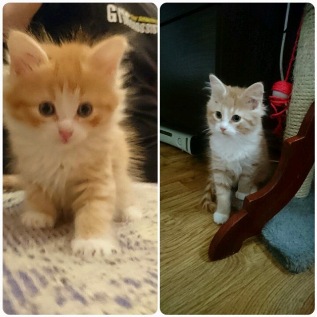 Sven till vänster och Sixten till höger. De är ganska lika varandra. Och om ytterligare en dryg vecka kommer lilla Saffran att vara flyttfärdig och flyttar då hem till Ida och Daniel. Då är hon 12 v och kommer till dem som en Alla-hjärtansdagsgåva. Hon är en liten saffransgul ulltuss och förstås vansinnigt söt, hon med