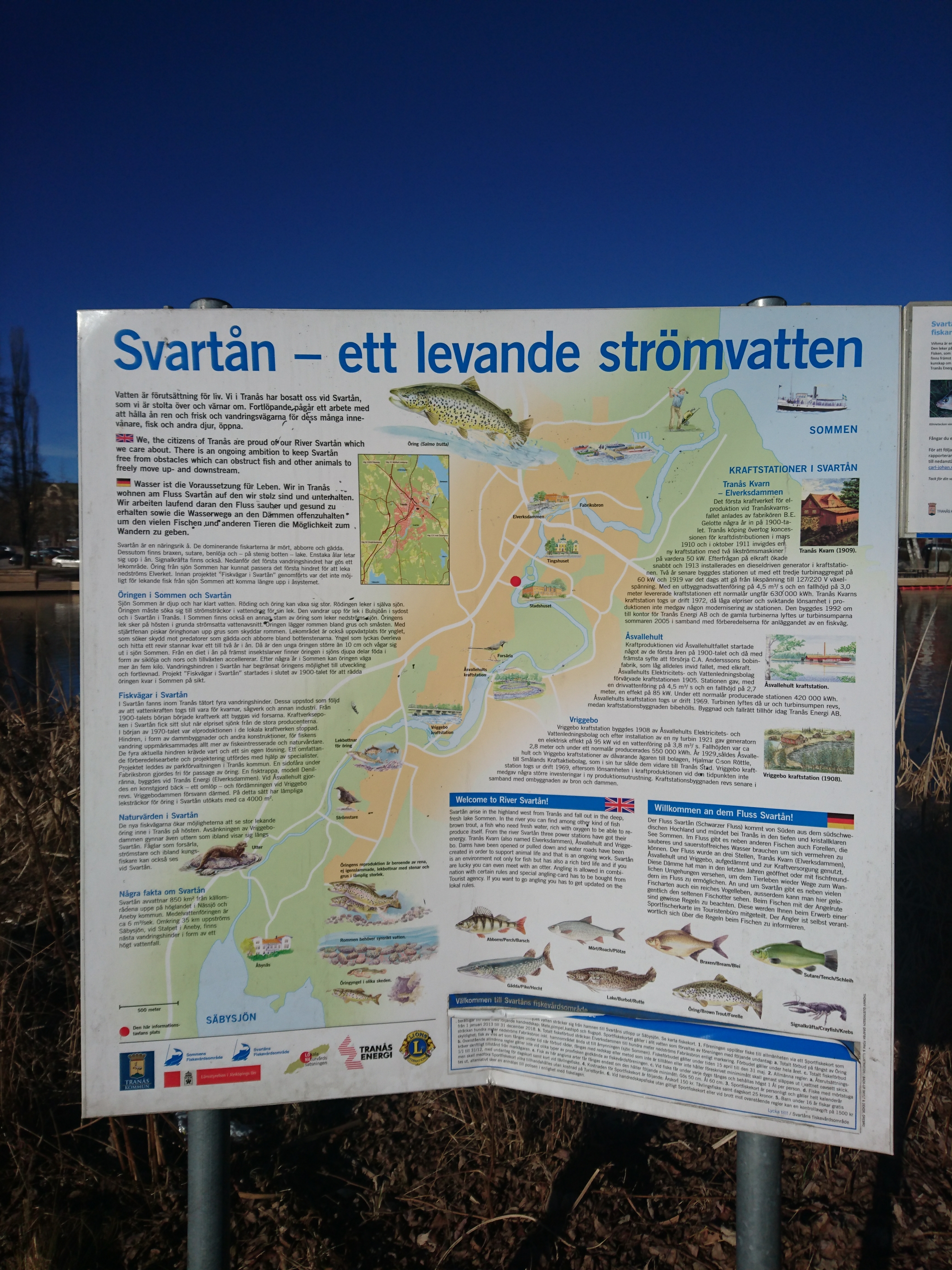 Vår bloggvän Matts Torebring skrev om Svartån häromdagen. Jag kan nu fylla på med lite bilder och lite mera info om just Svartån, som rinner genom Tranås. Om du vill läsa texten på info-skylten kan du klicka på bilden, så får du upp den i större format.