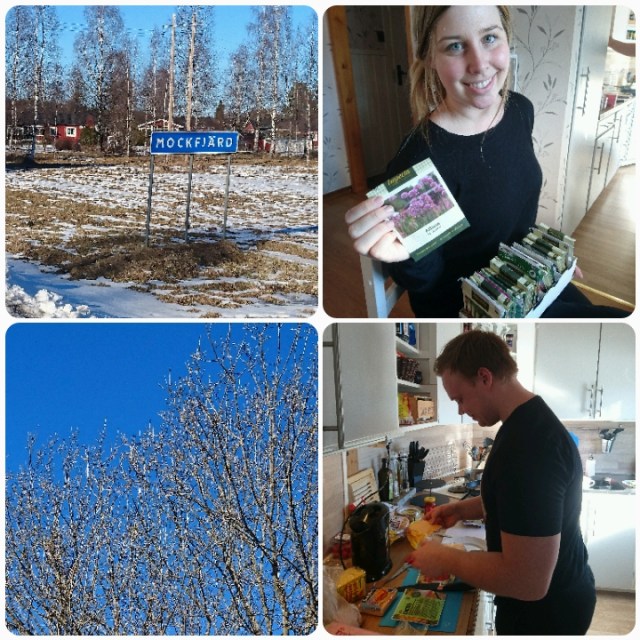 I helgen som var, besökte vi Mockfjärd. Det är alltid lika roligt att åka upp ock hälsa på vår äldsta dotter Ida och hennes Daniel. Vädret var vårlikt och solen sken från en klarblå himmel. Ida visade alla fröer som hon ska sätta, med grönsaker ock blommor. Hon har fått gröna fingrar efter sin mormor tror jag. Roligt att höra om alla planer. Daniel är duktig vid spisen så han bjöd på hamburgare.