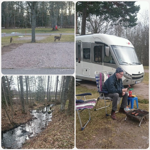Igår åkte vi ut till husbilen på Hätte Camping. Oj så skönt att börja bo i den emellanåt igen. Gissa om jag har sovit gott?! Det gör jag alltid i husbilen. Idag plockade vi i ordning i husbilens ”garage” och flyttade om lite med stolar, grill och cyklar så det blev lite bättre och smartare. Även om solen inte ville visa sej, så grillade vi korv till lunch. Jag tycker det är gott, i all enkelhet. Vi hade också ett kort besök av två rådjur