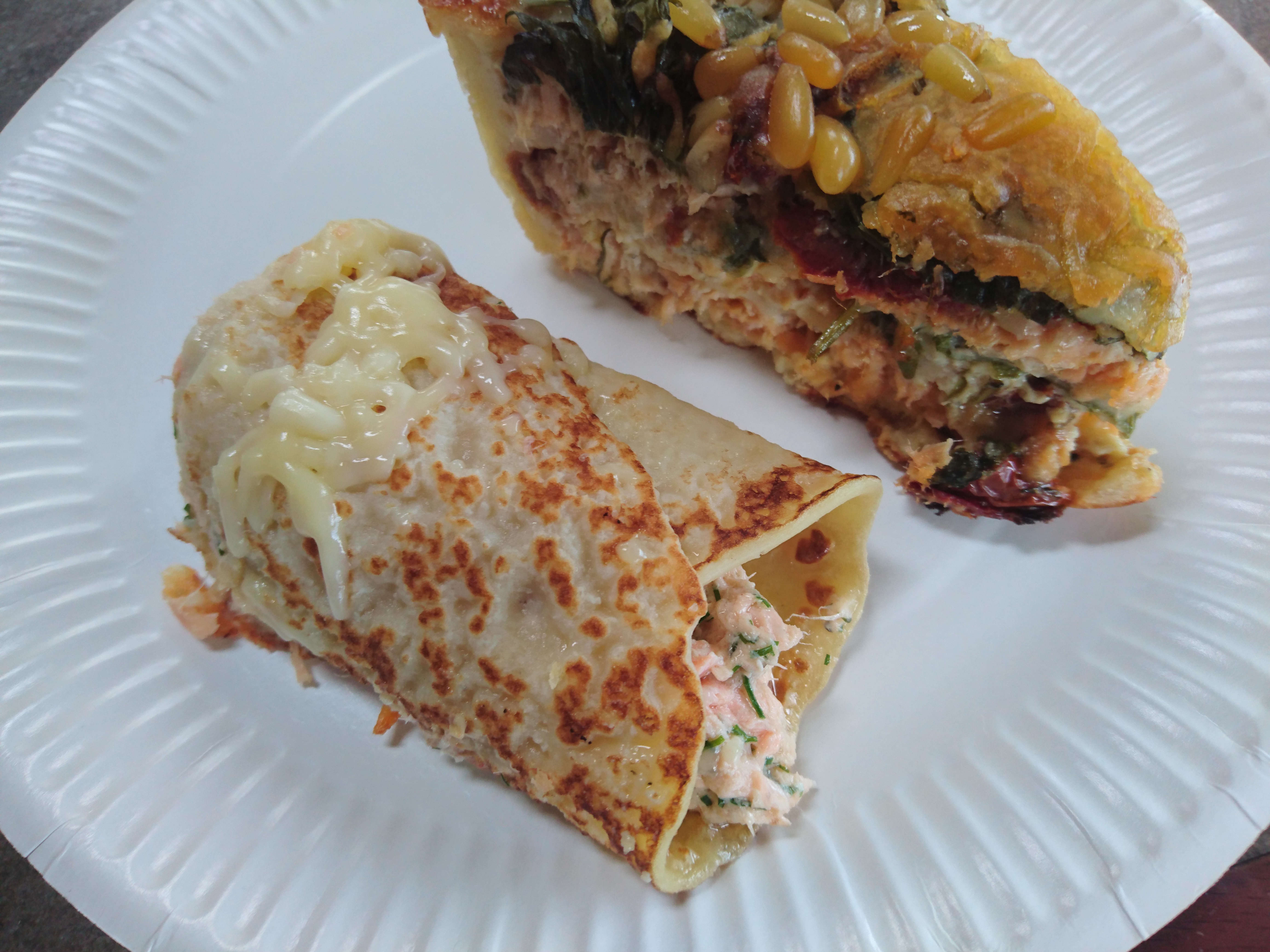 Sedan for vi ut mot kusten och Falkenberg. Ett besök vid Laxbutiken där vi köpte lite kvällsmat, en Toscansk paj med lax, soltorkade tomater och pinjenötter samt en lax-crep.