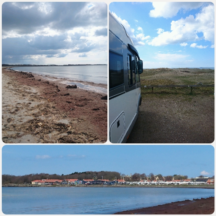 Under förmiddagen lämnade vi Falkenberg och Lundåkrahamnen. Båtklubben hade städdag och vi var lite rädda för att behöva hjälpa till. Nej jag skojar, vi är inte rädda för det men Varberg lockar. Här hittade vi ställplatsen vid Apelviken Strand. Här på grusplanen är det plats för ca 24 husbilar. Ingen el men tillgång till toaletter av kvalité okej. Vi fick plats på ”första parkett” med nosen mot sanddynerna vid stranden.