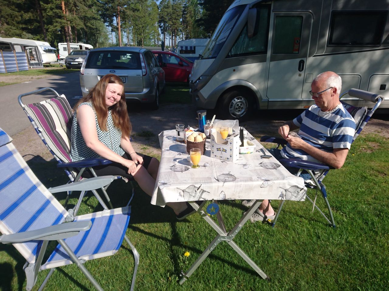 När jag kom hem till husbilen och Hätte, hade vår dotter Elin kommit. Alltid roligt med besök! Lördagen åt vi naturligtvis frukost ute sedan for vi till Hamnen och kikade lite på Hamnfestivalen. Det gick ganska fort….