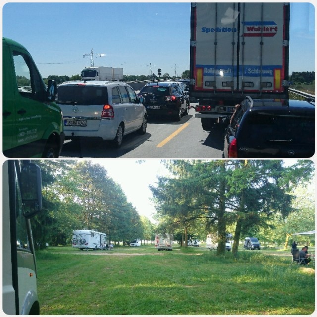 Det hjälpte inte att vi försökte välja alternativa vägar, det var så många som gjorde det. Man ska alltså hålla sig så långt borta från Hamburg som det bara går.