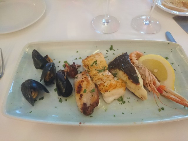 Till varmrätt fick vi musslor, bläckfisk, två olika sorters fisk samt en languster.