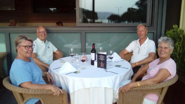 Häromkvällen blev det ett besök på ytterligare en Guide Michelin-krog i Palamos. Det finns ju fyra stycken inom en 500 m radie. Den här restaurangen besökte vi fjol också, så därför hade vi höga förhoppningar på god mat. I år kostar en trerättersmiddag 29,95€ inklusive vin. Vi blev inte besvikna – maten var lika god i år.