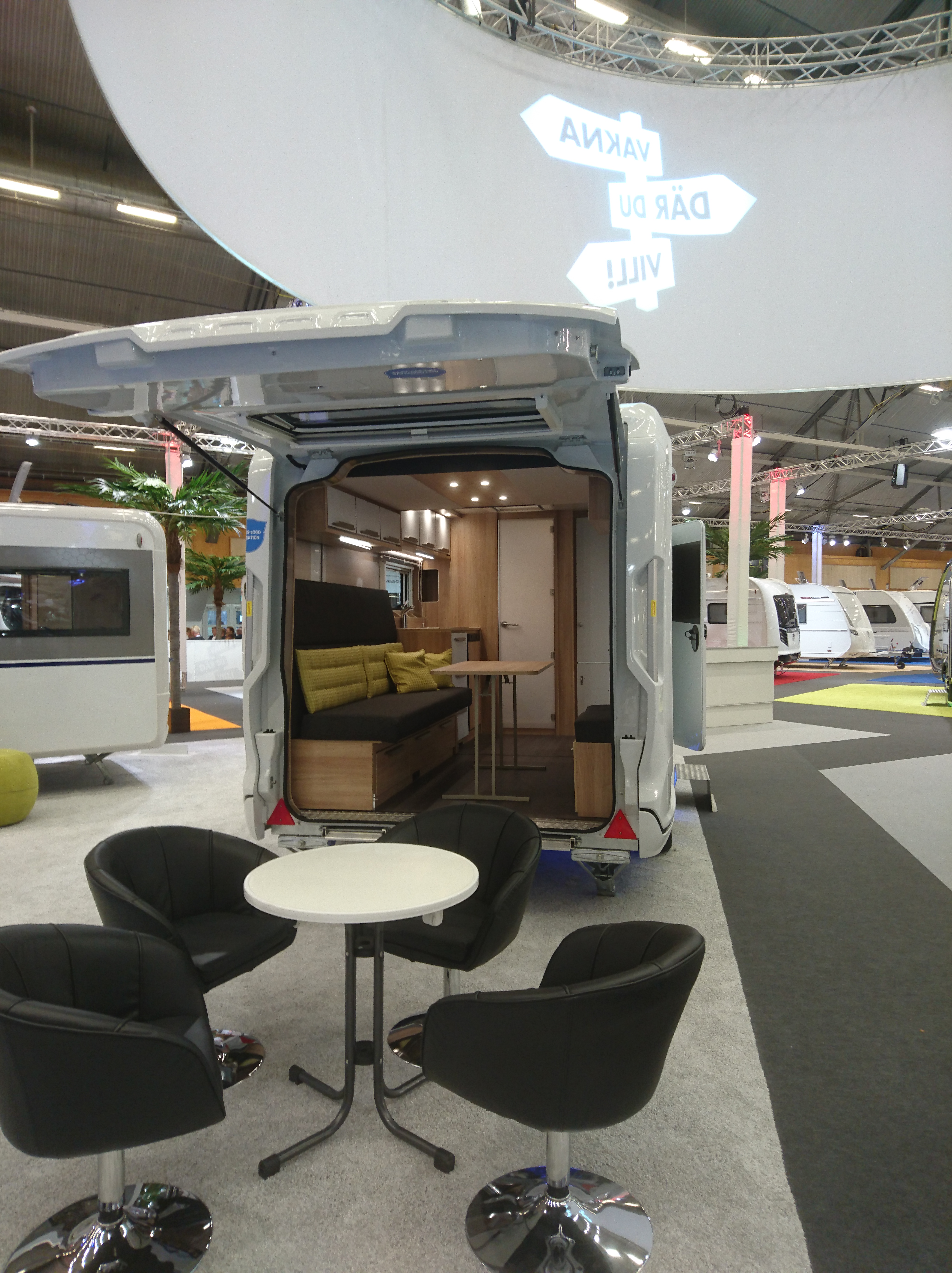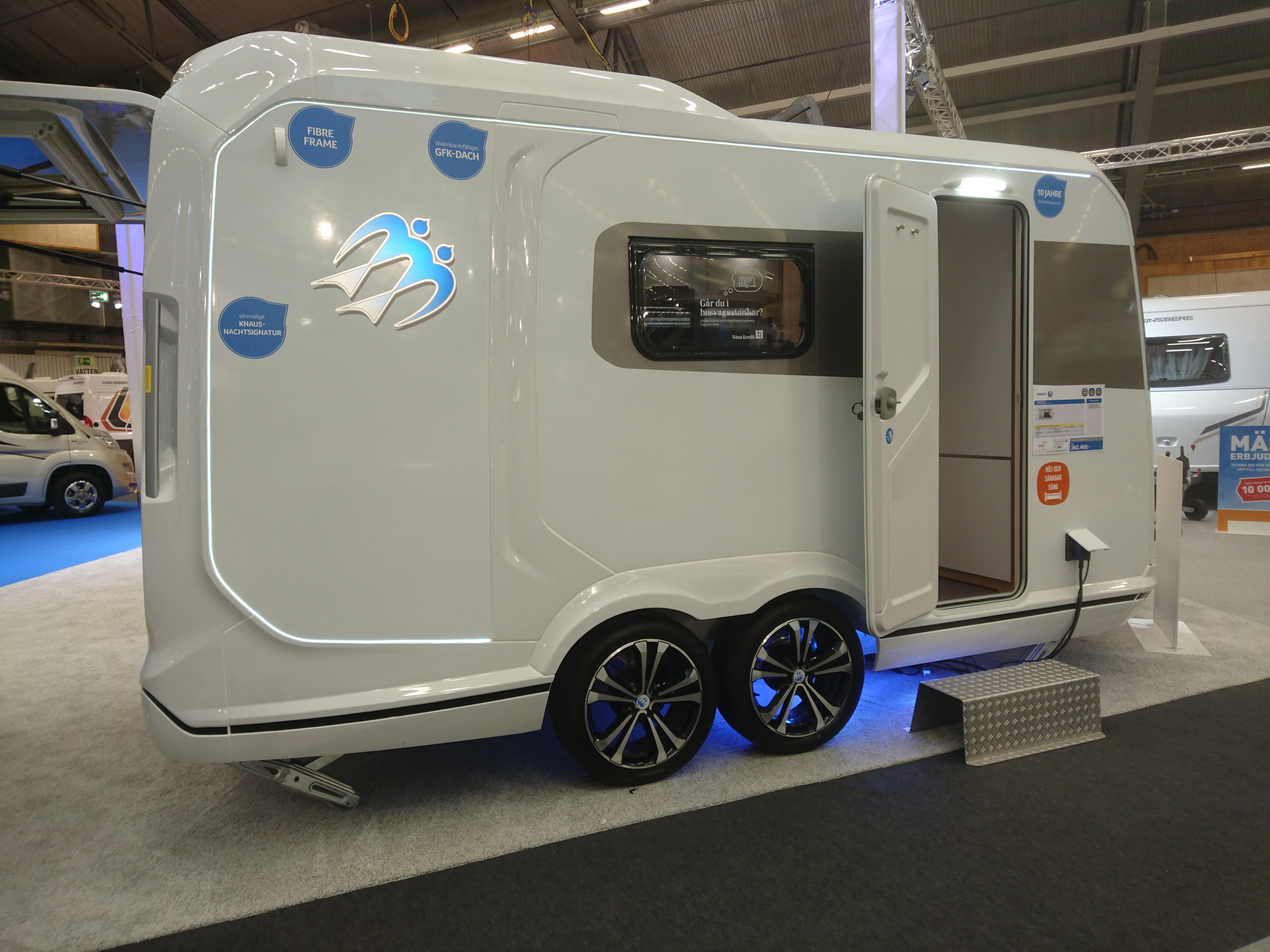Hos Knaus fanns en liten husvagn med öppningsbar baklucka.