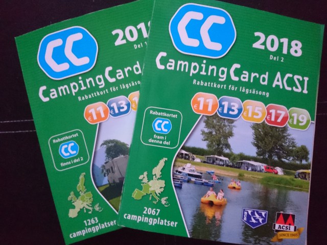 Så ramlade 2018 års utgåva av Acsi-katalogen, ner i brevlådan. Acsi är en sammanslutning av campingar i Europa som lämnar bra rabatt på campingpriset under lågsäsong. Man betalar mellan 11-19€/natt och gäller då för två personer inklusive fordonet, vatten, dusch och el.