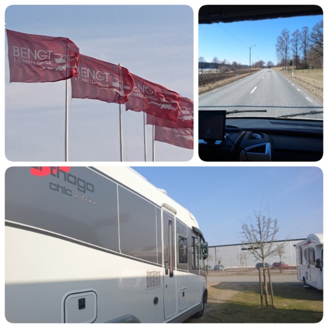 Tänk så skönt man kan tycka det är att fara iväg och göra ett fukttest och lite service. Vårens första tur har gått hit till Örkelljunga. Här är soligt men väldigt blåsigt så vi blir nog vaggade till sängs om det inte mojnar.