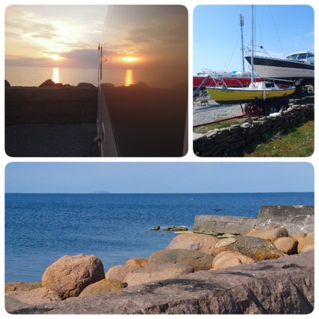 Det var gott om plats. Vi hoppade lite in och ut i husbilen, solen sken men vinden var riktigt bitande ibland. Ställplatsen (140:-/natt) är välordnad och det finns dusch, toalett samt möjlighet till tömning och fyllning. El finns också till platserna. Den är dock inte riktigt tillförlitlig och var försvunnen en stor del av kvällen. Dock höll det under natten så vi frös definitivt inte trots en del regnskurar
