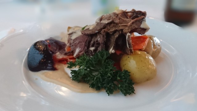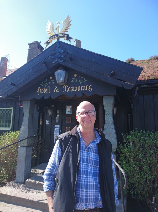Efter en lugn lördagsmorgon for vi iväg till Gränna och Gyllene Uttern. Vi hade haft lite sms-kontakt med våra goda vänner som stod där med sin husbil. Vi bestämde då att hälsa på dem, men med lillebilen. Vi behöver ju ha lite mil på den också. När vi kom fram gick vi tillsammans till Gyllene Uttern för att äta lunch. Vi valde Slottsstek, som var väldigt god.