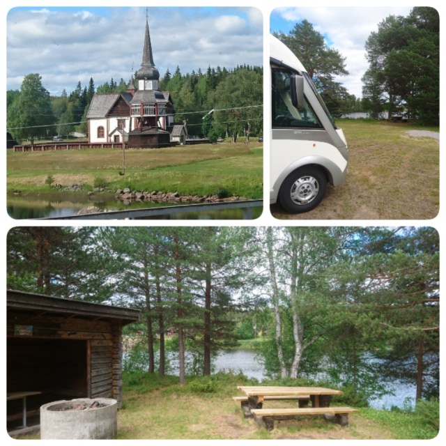 Vi fortsatte dock ca 3 mil till, fram till Ytterhogdal. Här står vi precis vid Kyrksjön, vid Folkets hus. N 62.17376 E 14.94248 En grusplan som är ganska knölig men utsikten är vacker. Här finns också tillgång till toalett. Det kostar 50:-/natt och man betalar via swish eller pengar i ett kuvert.
