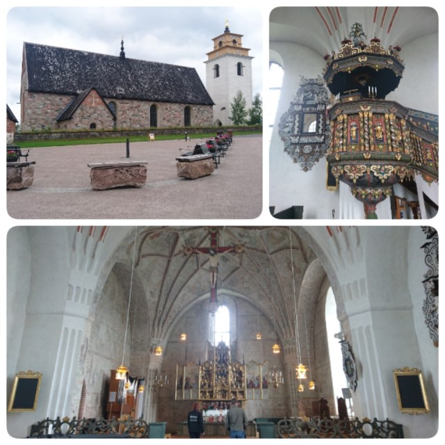 Vi åkte sedan till Gammelstads Kyrkby, strax utanför Luleå. Detta är ett Världsarv. Kyrkan är från 1400-talet och kyrktornet är en bit ifrån själva kyrkan. Altartavlan är praktfull, tillverkad i Antwerpen. Predikstolen är 1700-tal, målad och förgylld.