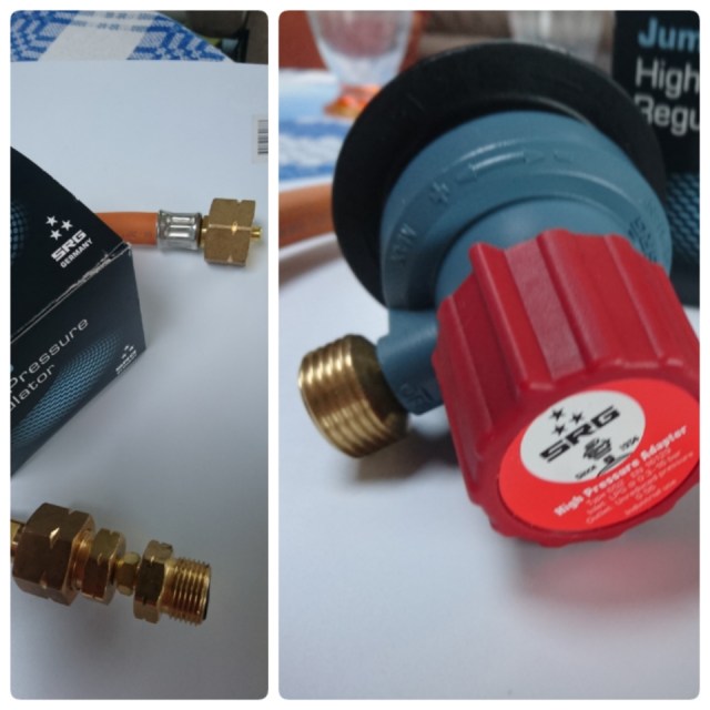 Uppdatering: Nu har vi även fått med oss ett Spanienkit för att ansluta den spanska flaskan som vi kommer att behöva när vi står på Camping. Anders, Led2u kom förbi här på ställplatsen med det, så vi kunde köpa detta med. Tack!! Snacka om service, här i Blekinge!