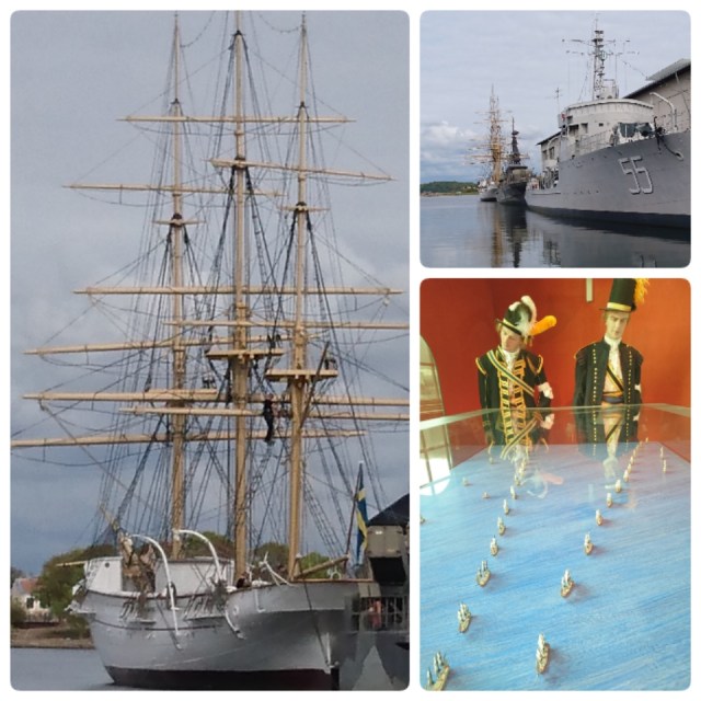 När vi lämnade Karlshamn åkte vi lite österut, till Karlskrona. Vi ville se lite mera av stan och kika på Marinmuseet. Det finns en ställplats ganska centralt på kajen, så där stannade vi. Den är på gångavstånd från museet. Bra uppmärkta platser. Soptunna på platsen men till dusch, toalett, bastu och tvättmaskin var det ca 400 m. Tömning och fyllning finns på andra sidan havsviken, dvs man måste köra dit. Nåväl vi betalade 180:- och vill man ha el kostar det 20:- till. Så gick vi iväg till museet