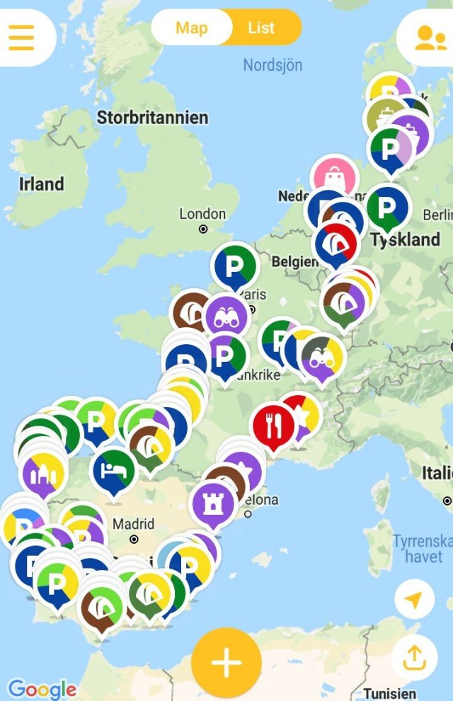 Det närmar sig, våran första långresa till sydliga nejder. Vi har fått både telefonsamtal, mejl och bilder på messenger med massor av tips på ställen dit vänner redan har varit. I appen Mapstr (som jag fick tips om av Bo i Husbil) kan jag lägga in alla tips jag får. Inte bara ställplatser utan även restauranger, sevärdheter, vandringsleder mm. Det är så värdefullt att ha såna här vänner, som delar med sig av sina erfarenheter! Jag ska försöka göra detsamma, när vi väl kommit iväg, genom att försöka vara tydlig med både vägval och koordinater till ställplats /camping.