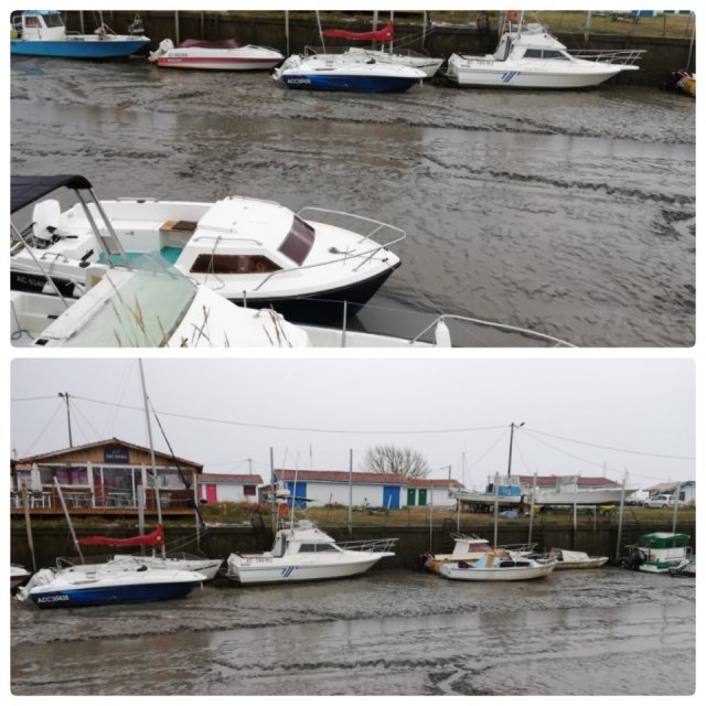 I den lilla kanalen bredvid ligger nu båtarna på botten så vi undrar – Vem drog ur proppen? 🤔😋