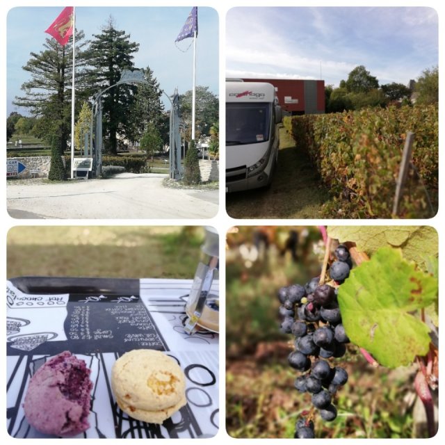 Vi återvände till fastlandet och for till Blay istället. När vi såg en tank passade vi på att tanka och såg att det kostade 1,436 på Hyper U i en by vi passerade. Det känns ju helt ok. Vi hade fått tips om en ställplats i Blay, så vi testade den. Det ligger på vingården Château Marquis de Vauban. N45.135768, W0.664186